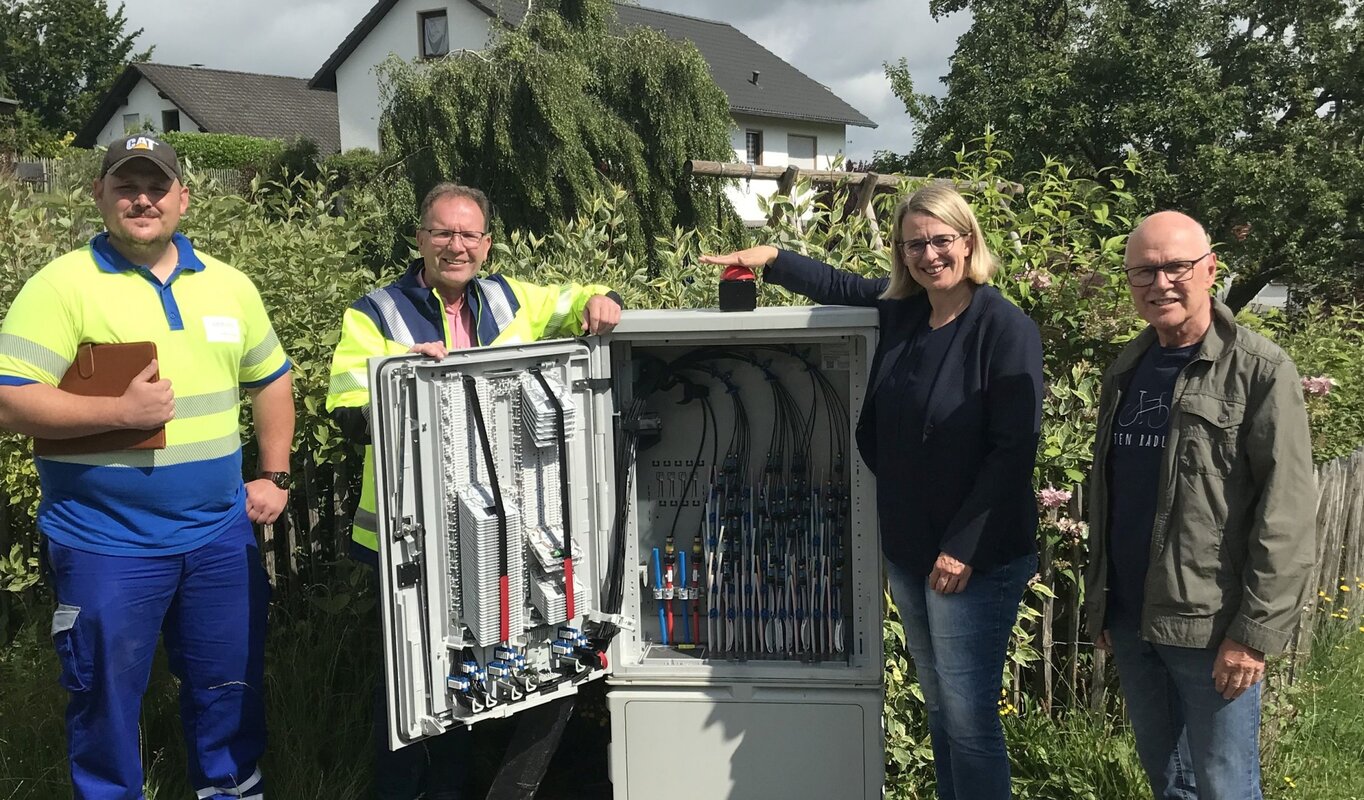 Bild zeigt (v.l.): Martin Oberdörfer (Westnetz GmbH), Achim Loos (Westenergie AG), Bürgermeisterin Nicole Reschke und Ortsvorsteher Heinz Fischbach